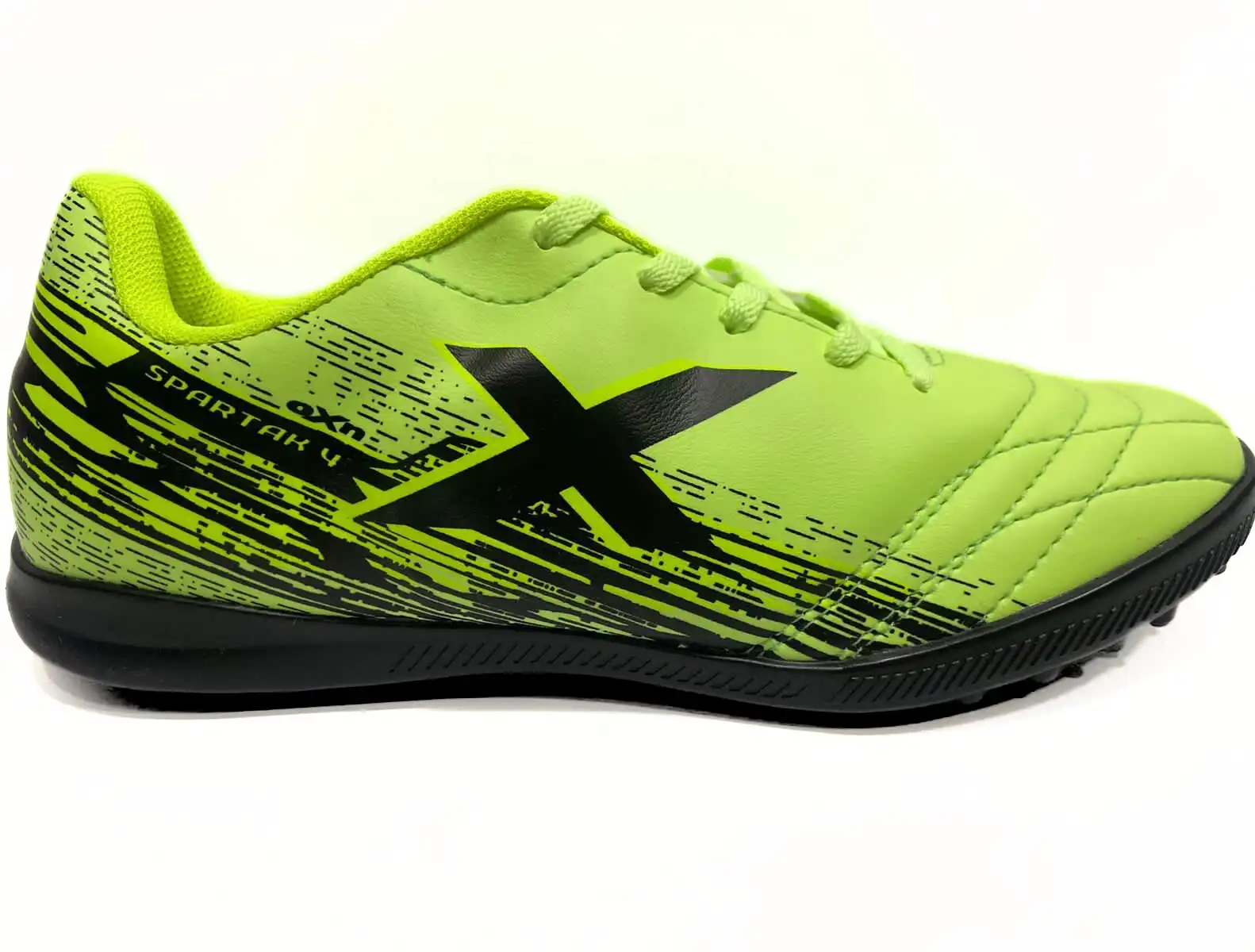 Para você se destacar dentro dos campos sintéticos, a OXN te oferece a chuteira Spartak 4. Confeccionada em material sintético, é resistente e protege os seus pés. O seu forro é em têxtil e acolchoado para conforto durante as partidas e também evitar lesões. Seu solado é fabricado em PVC, garante resistência e firmeza ao pisar no gramado, evitando quedas. Por fim, o seu design é predominantemente verde limão com detalhes em preto. Garanta já a sua e dê show com a bola nos pés!